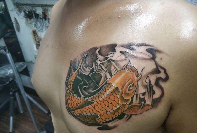 当前位置: 首页 >内蒙古赤峰市纹身店-回山刺青纹身图案>鲤鱼遮盖纹身图片_胸部老传统鱼纹身图案