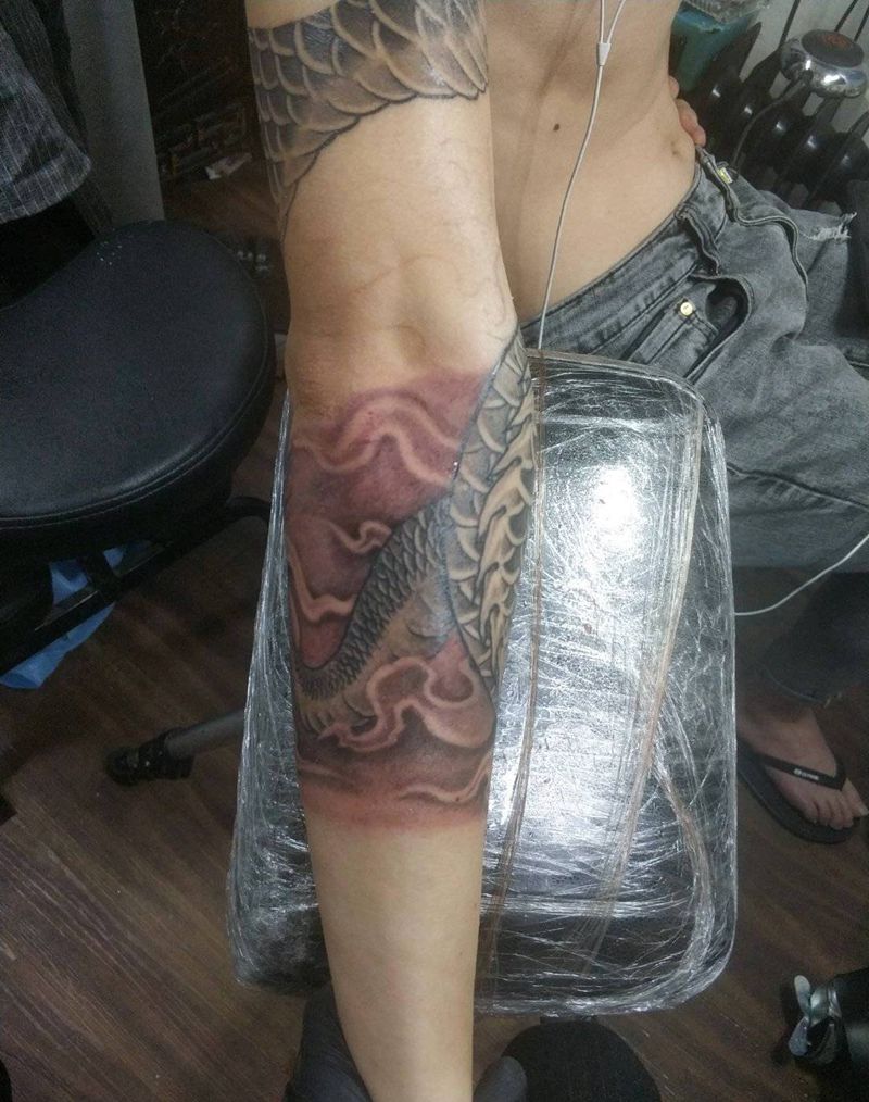 • T网红王老大花腿龙纹身图片_腿部新传统纹身图案