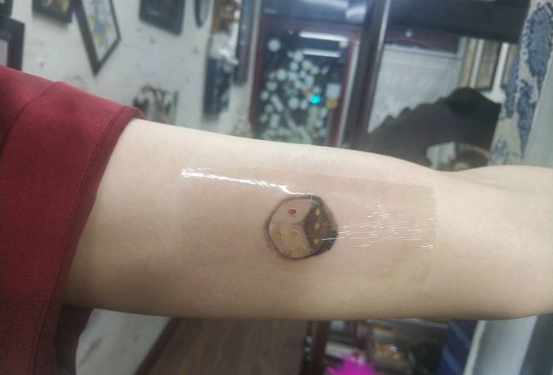 当前位置: 首页 >内蒙古赤峰市纹身店-回山刺青纹身图案>骰子纹身图片_手臂欧美写实骰子纹身图案
