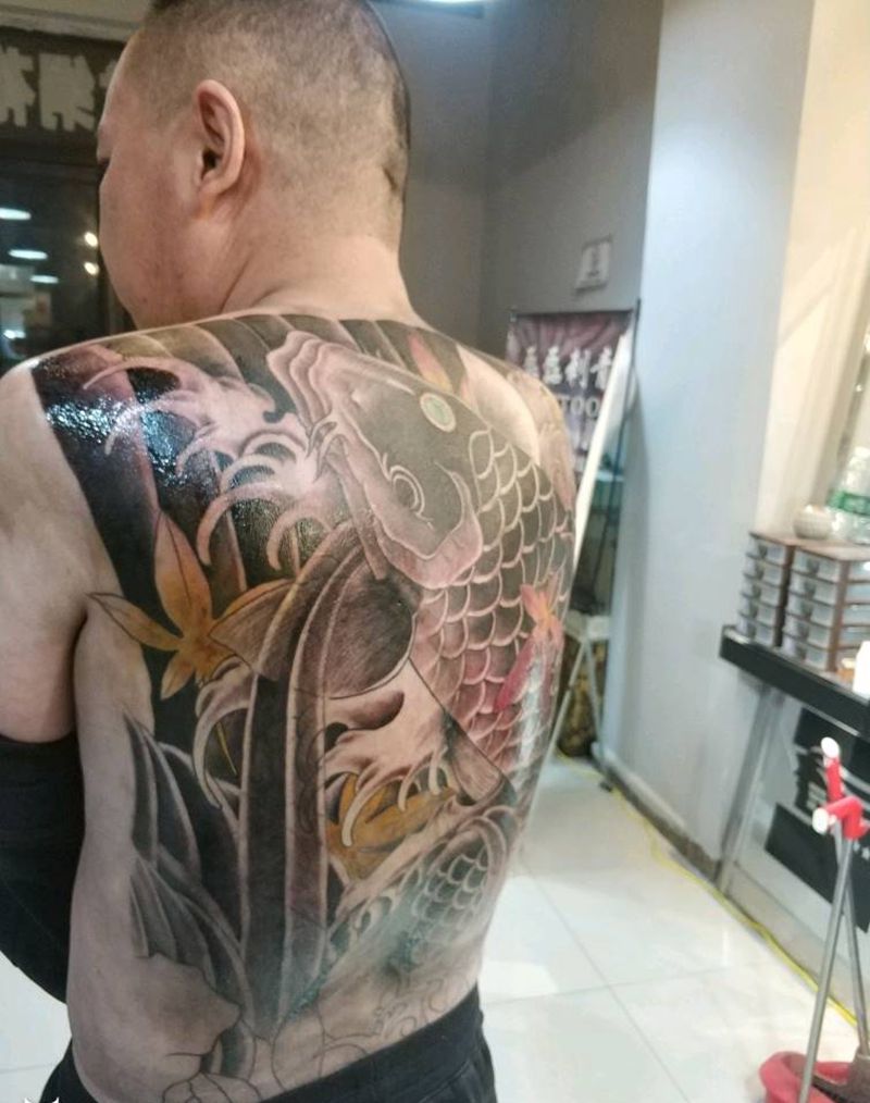 当前位置: 首页 >内蒙古赤峰市纹身店-回山刺青纹身图案>满背锦鲤纹身图片_背部老传统鲤鱼鱼锦鲤纹身图案