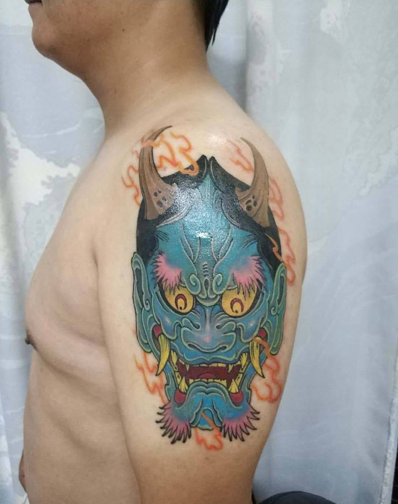 当前位置: 首页 >内蒙古赤峰市纹身店-回山刺青纹身图案>般若能面纹身图片_肩部新传统般若纹身图案
