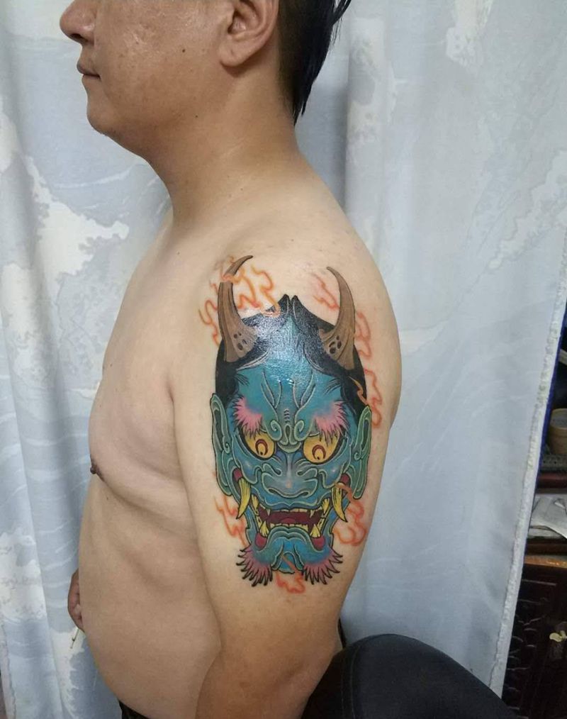 当前位置: 首页 >内蒙古赤峰市纹身店-回山刺青纹身图案>般若能面纹身图片_肩部新传统般若纹身图案