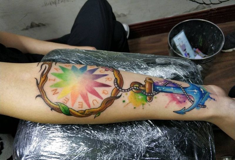 当前位置: 首页 >内蒙古赤峰市纹身店-回山刺青纹身图案>船矛树根(中间彩虹星非吾作)纹身图片_手臂水彩New School船矛纹身图案