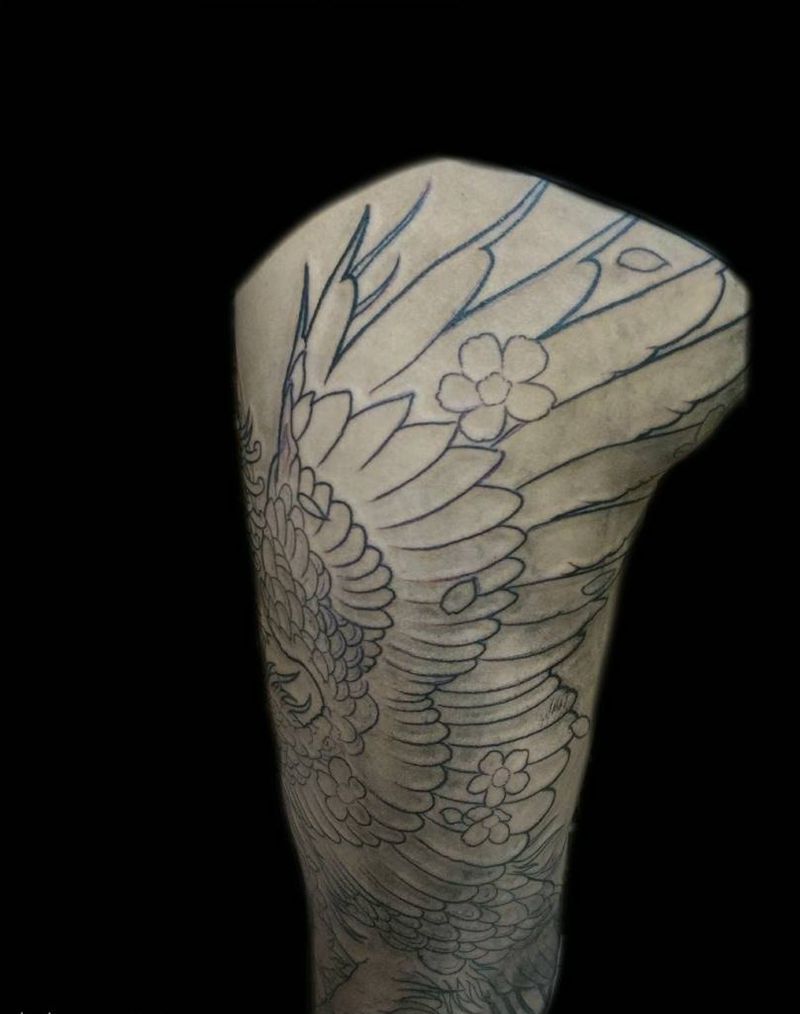 当前位置: 首页 >内蒙古赤峰市纹身店-回山刺青纹身图案>花腿凤凰线条纹身图片_腿部老传统新传统凤凰纹身图案
