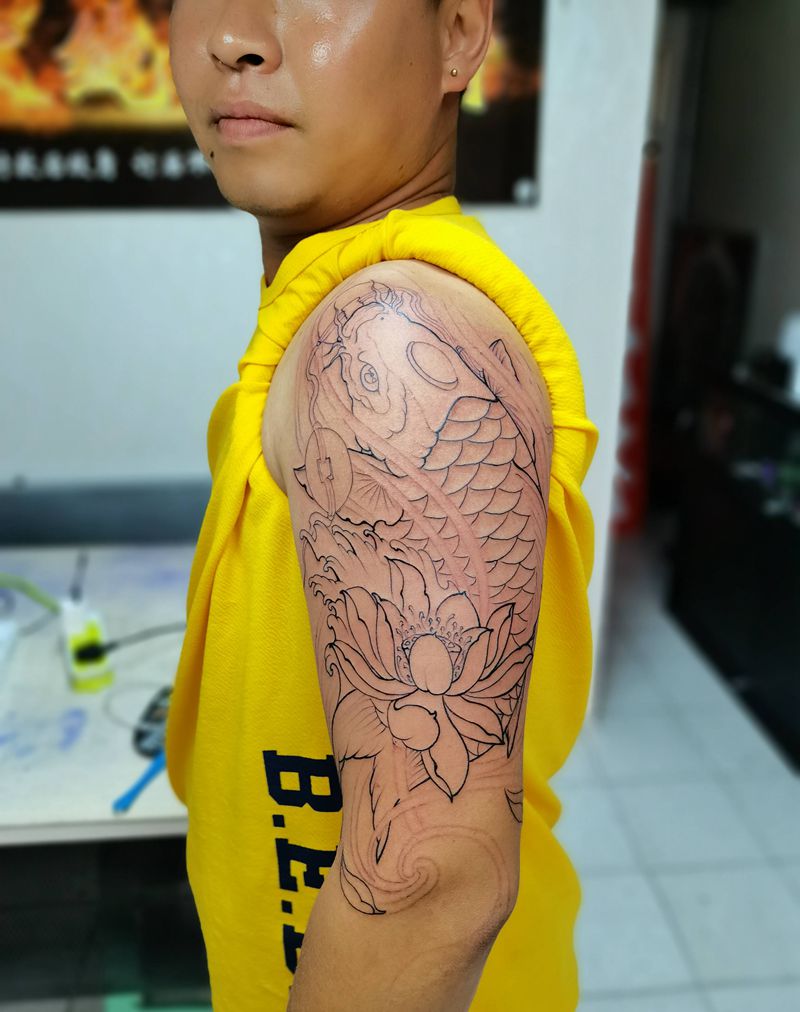 当前位置: 首页 >内蒙古通辽市纹身店-炉火纯青纹身纹身图案>大臂鱼线条纹身图片_肩部手臂老传统纹身图案
