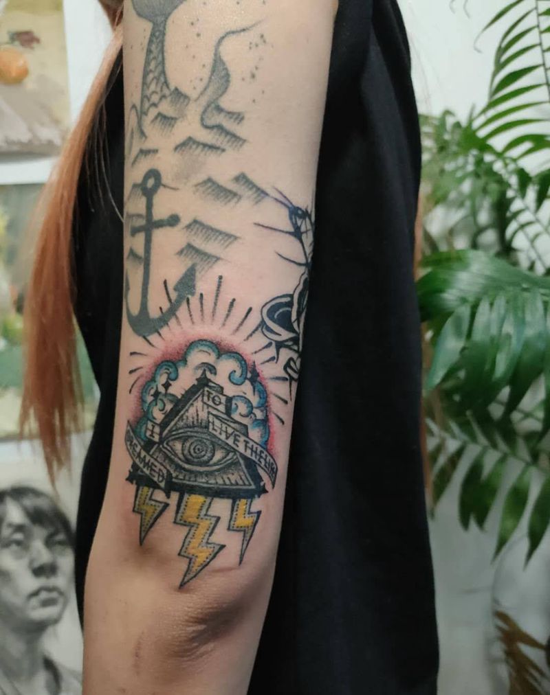 当前位置: 首页 >内蒙古赤峰市纹身店-回山刺青纹身图案>全视之眼纹身图片_手臂Old School纹身图案