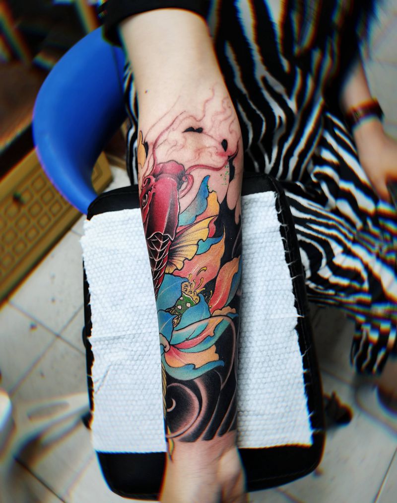 锦鲤包小臂纹身图片_手臂新传统水彩纹身图案