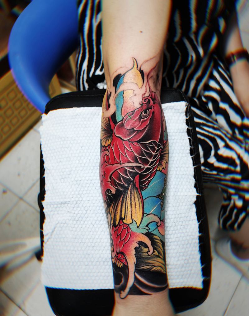 锦鲤包小臂纹身图片_手臂新传统水彩纹身图案
