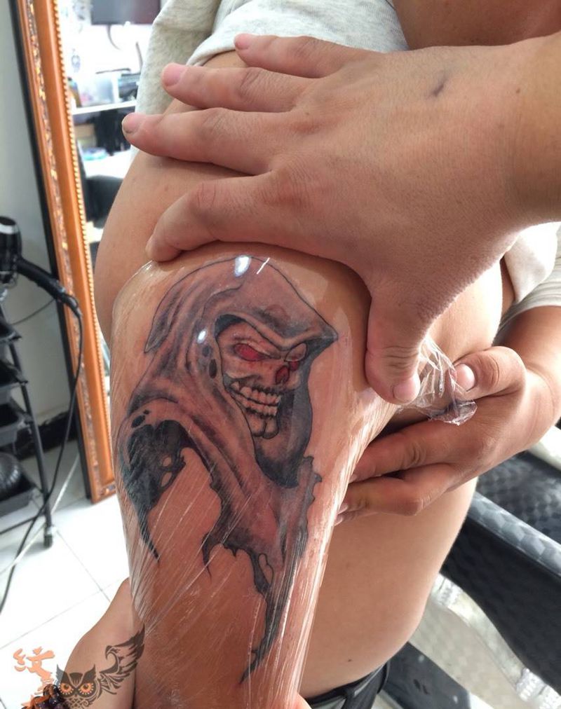 • T网红王老大花腿龙纹身图片_腿部新传统纹身图案