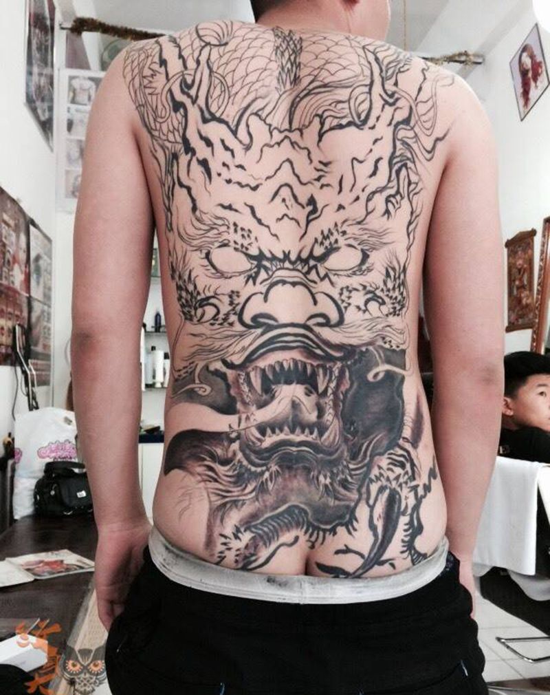 黑灰满背纹身图案