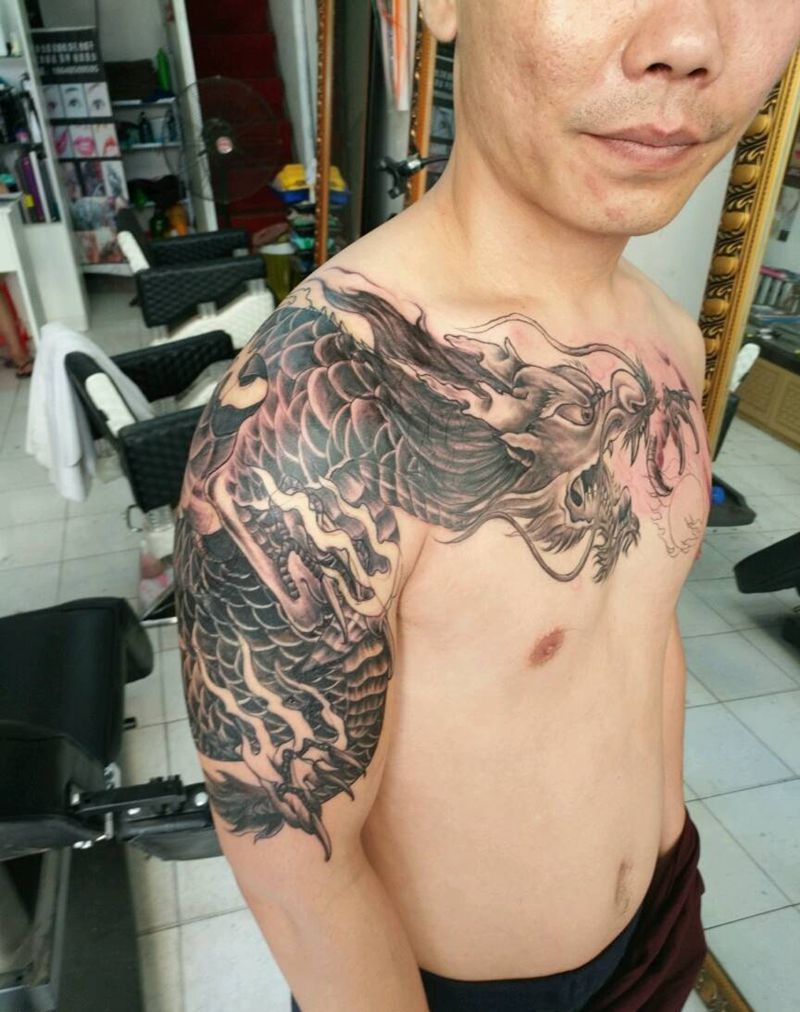 当前位置: 首页 >内蒙古通辽市纹身店-炉火纯青纹身纹身图案>披肩龙纹身图片