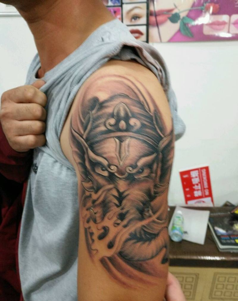 当前位置: 首页 >内蒙古通辽市纹身店-炉火纯青纹身纹身图案>象神纹身图片