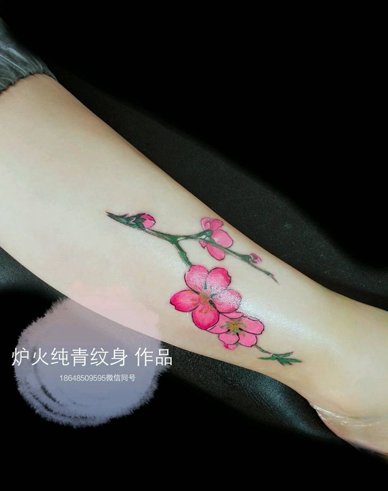 当前位置: 首页 >内蒙古通辽市纹身店-炉火纯青纹身纹身图案>梅花纹身图片_腿部清新植物成品纹身图案