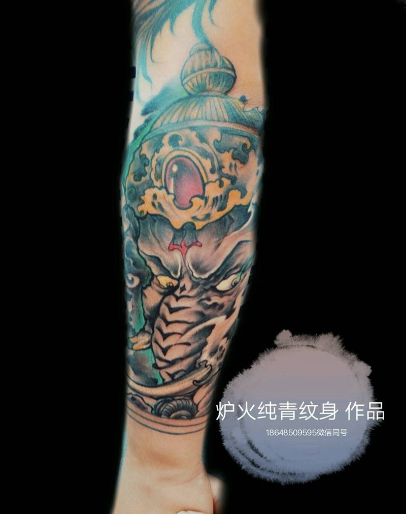当前位置: 首页 >内蒙古通辽市纹身店-炉火纯青纹身纹身图案>象神纹身图片_手臂传统动物成品纹身图案