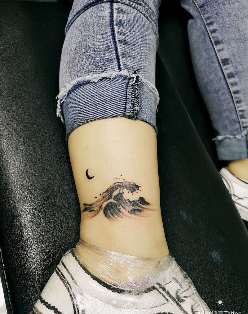浪纹身图片_脚部水墨纹身图案