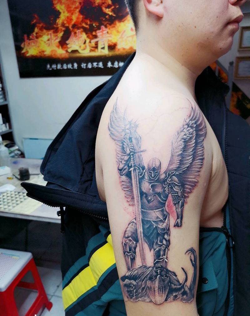 《大天使》花臂一部分纹身图片_手臂欧美写实纹身图案