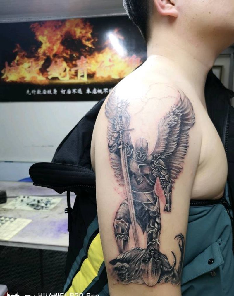 当前位置: 首页 >内蒙古通辽市纹身店-炉火纯青纹身纹身图案>《大天使》花臂一部分纹身图片_手臂欧美写实纹身图案