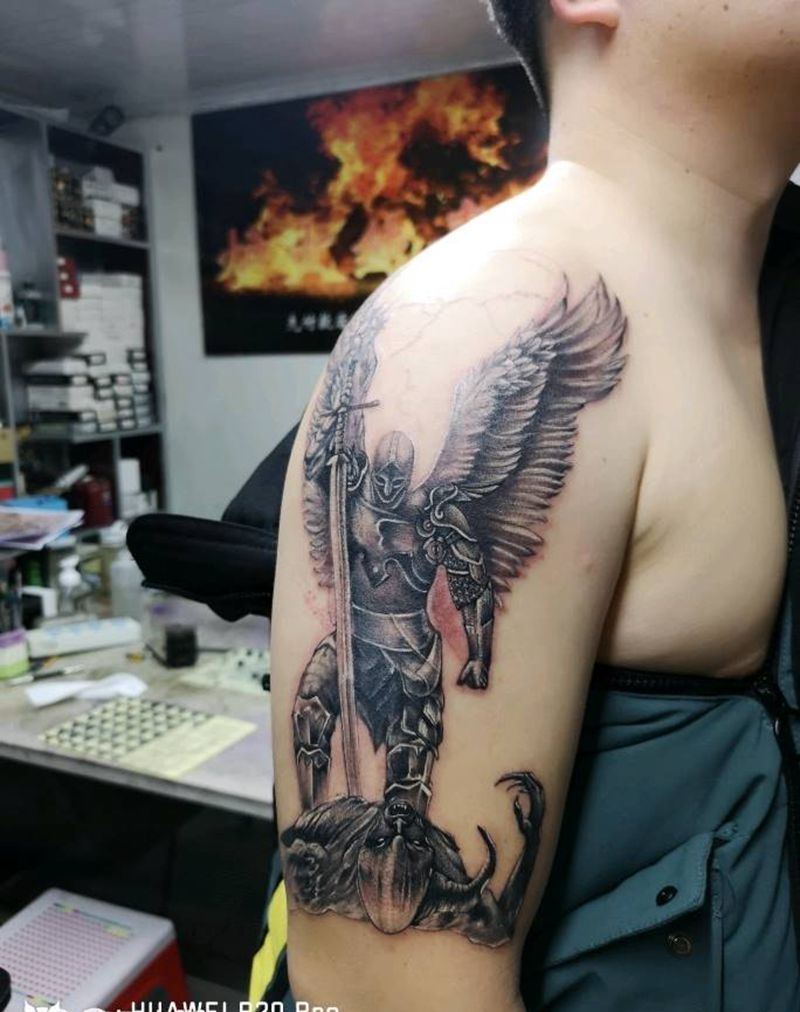 《大天使》花臂一部分纹身图片_手臂欧美写实纹身图案