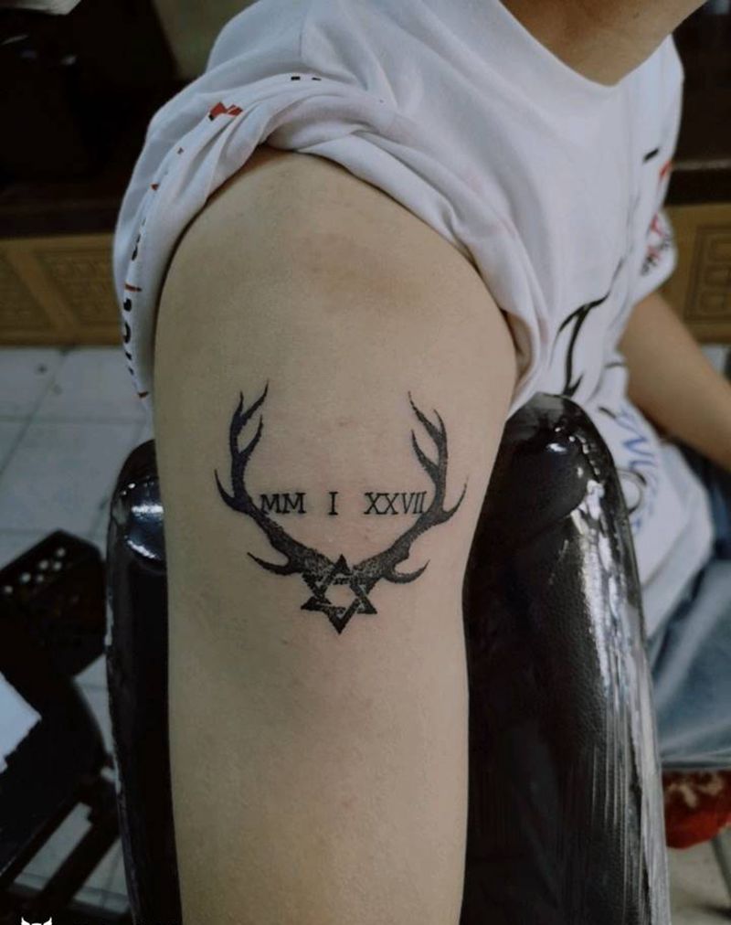 点刺《鹿角》纹身图片_肩部点刺纹身图案