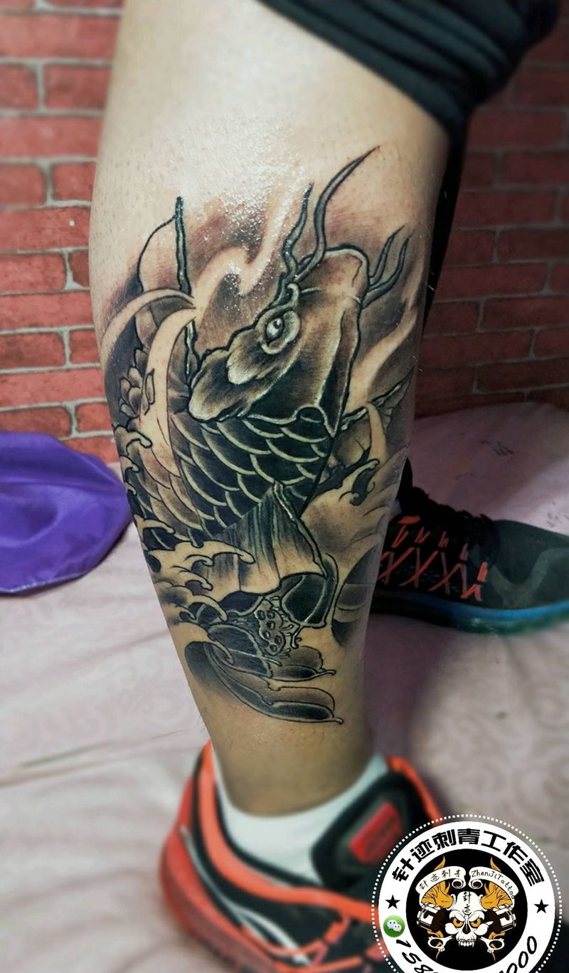 • T网红王老大花腿龙纹身图片_腿部新传统纹身图案
