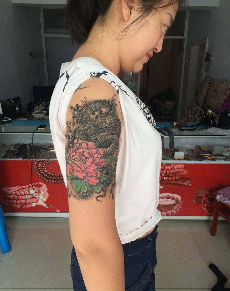当前位置: 首页 >内蒙古通辽市纹身店-通辽针迹刺青纹身图案>蛇盘牡丹纹身图片