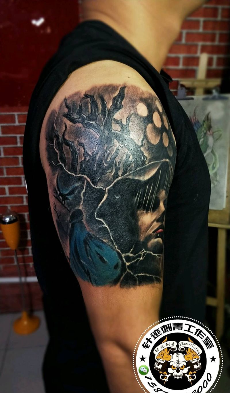 • 纹身吧推荐的披肩图腾半胛纹身图案作品展示