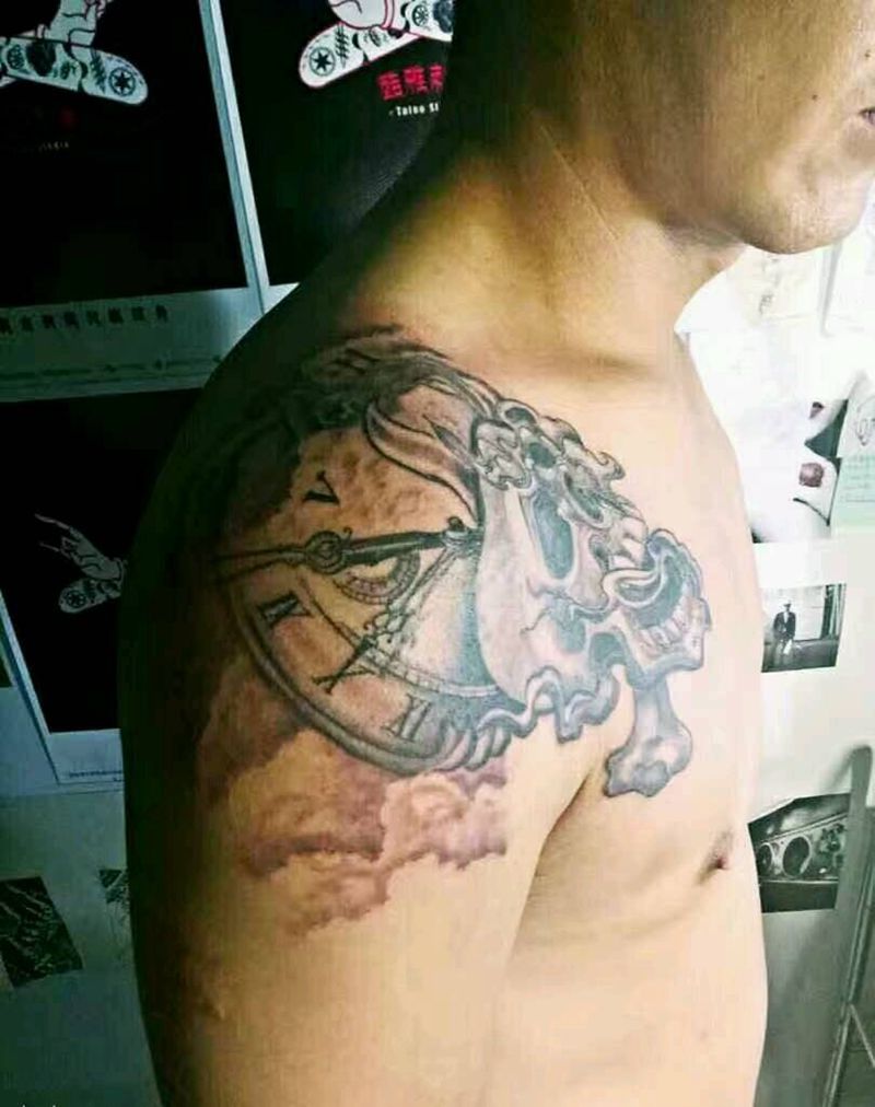 死亡与时间纹身图片_肩部欧美成品纹身图案