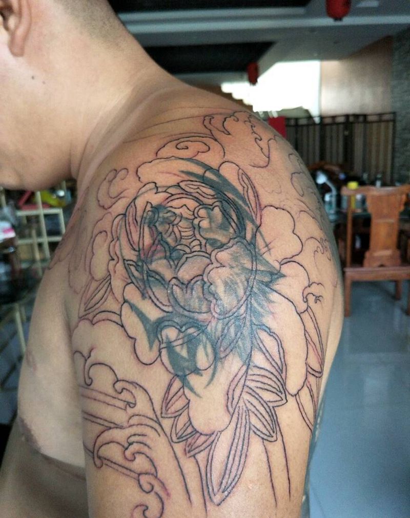 • 纹身吧推荐的披肩图腾半胛纹身图案作品展示