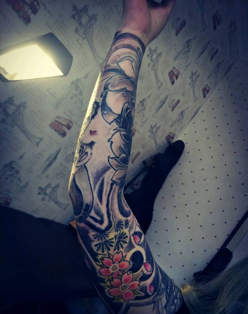 当前位置: 首页 >内蒙古鄂尔多斯市纹身店-乌兰镇半墨刺青纹身馆纹身图案>传统女士花臂纹身图片