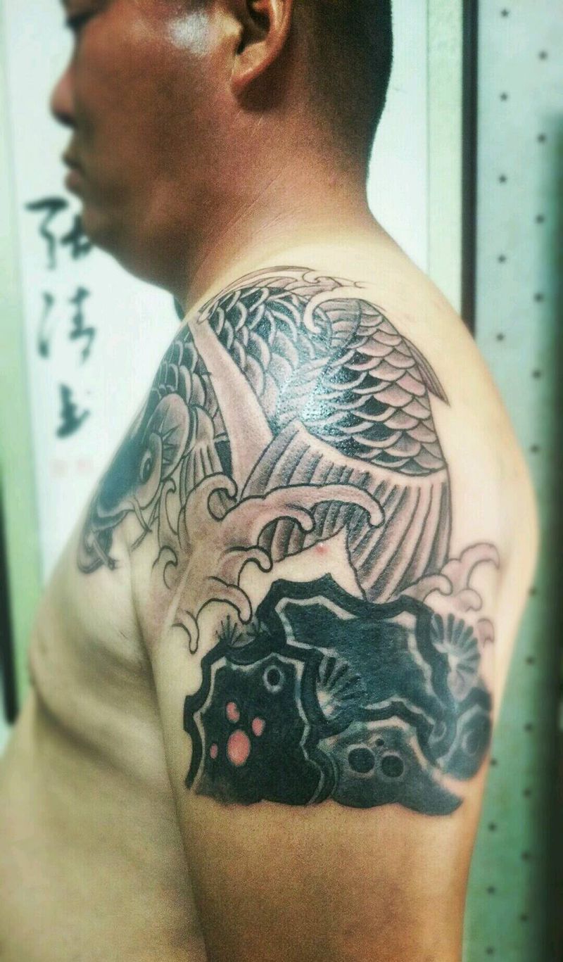 当前位置: 首页 >内蒙古鄂尔多斯市纹身店-乌兰镇半墨刺青纹身馆纹身图案>招财锦鲤口含钱币覆盖纹身图片_胸部肩部老传统覆盖纹身图案