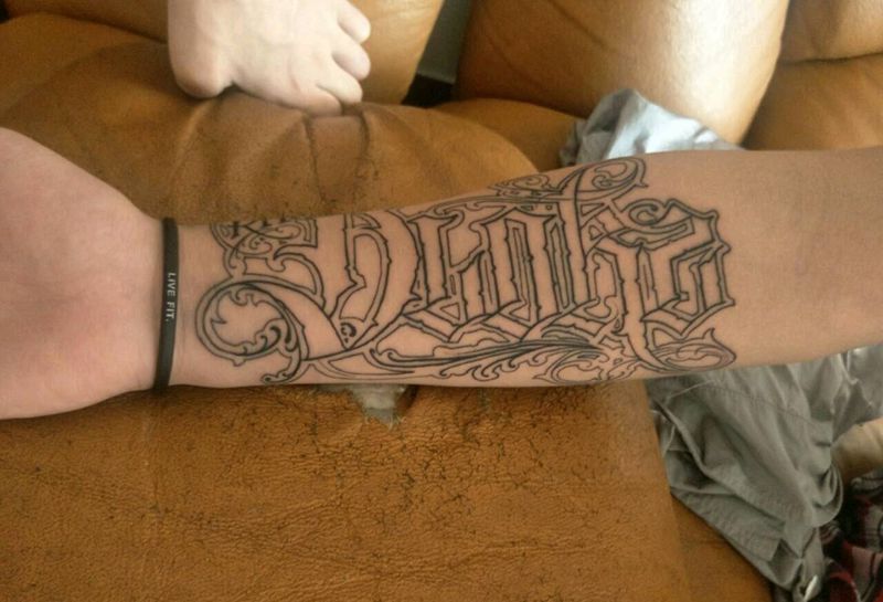当前位置: 首页 >内蒙古锡林郭勒盟纹身店-燃刺青纹身图案>奇卡诺字体纹身图片_手臂清新原创成品纹身图案