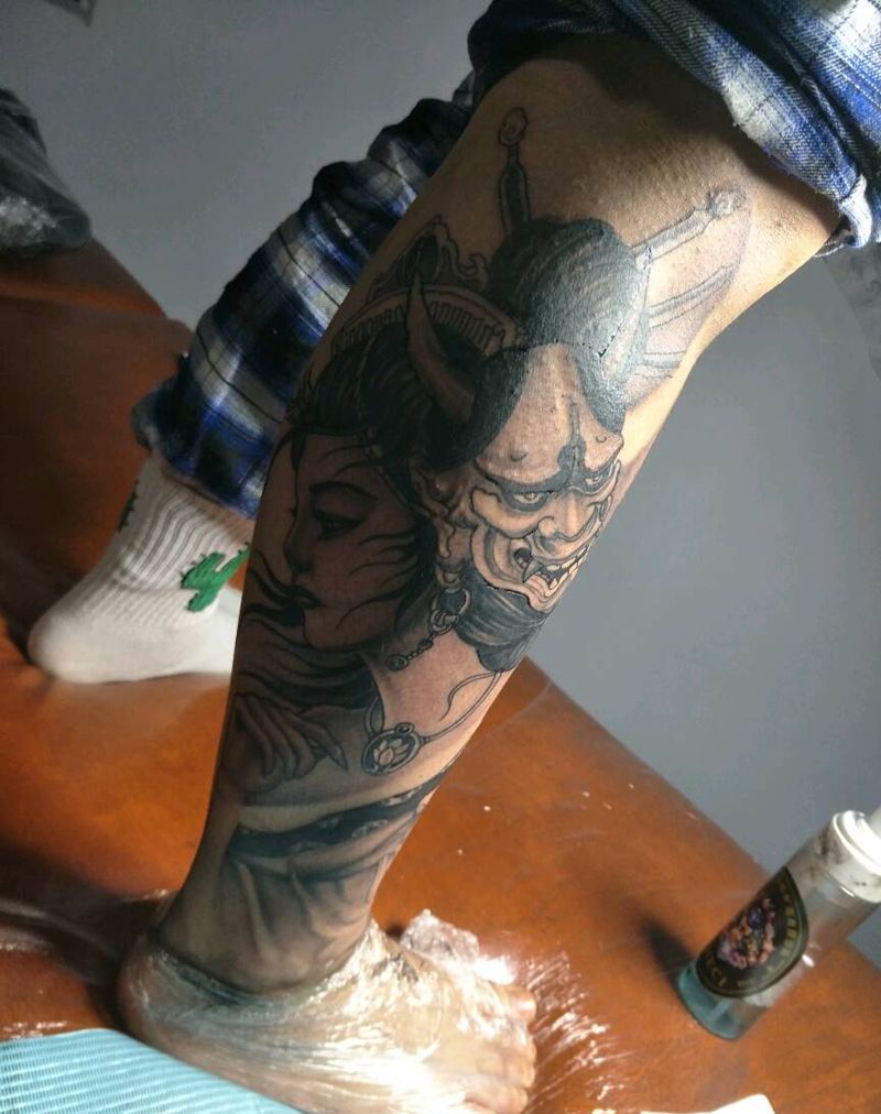 当前位置: 首页 >内蒙古锡林郭勒盟纹身店-燃刺青纹身图案>艺妓纹身图片_腿部传统人物成品纹身图案