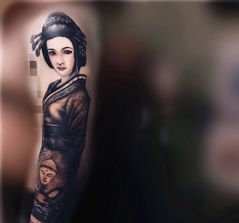 艺妓回忆录纹身图片_手臂欧美写实老传统纹身图案