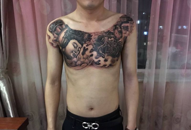 • 男性大花胸_42张优秀的男性大花胸纹身图案图片