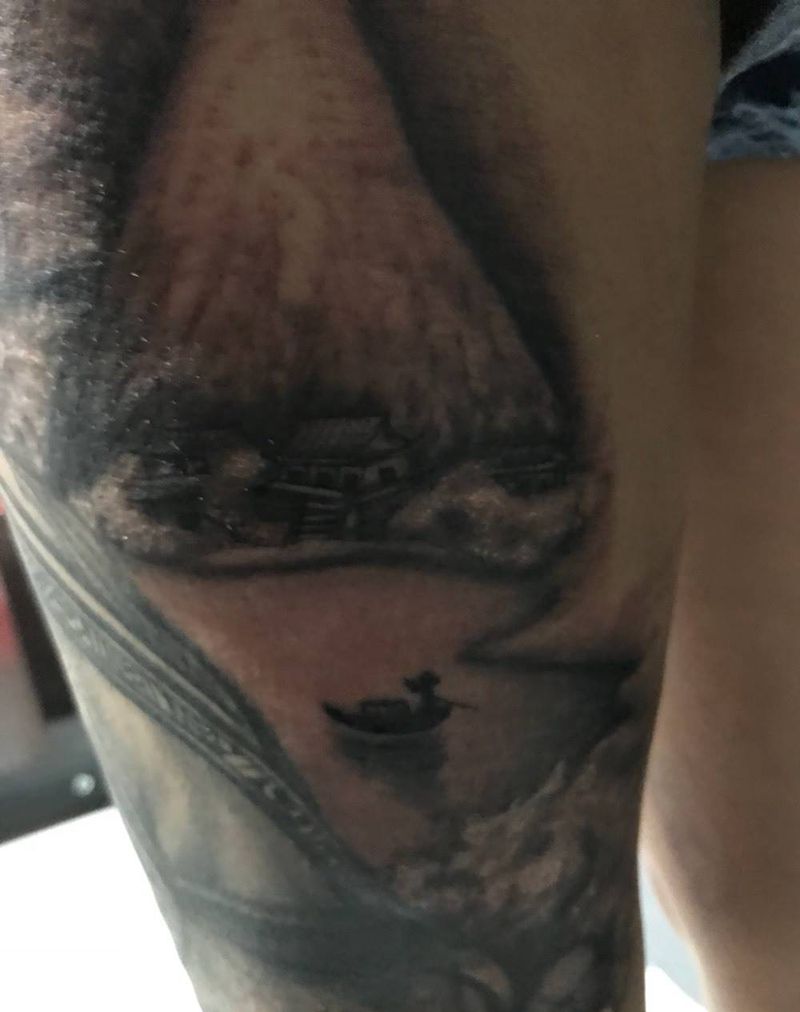 • T网红王老大花腿龙纹身图片_腿部新传统纹身图案