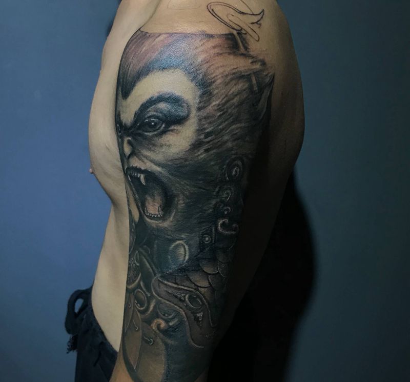 大圣 未完成纹身图片_手臂欧美写实老传统纹身图案