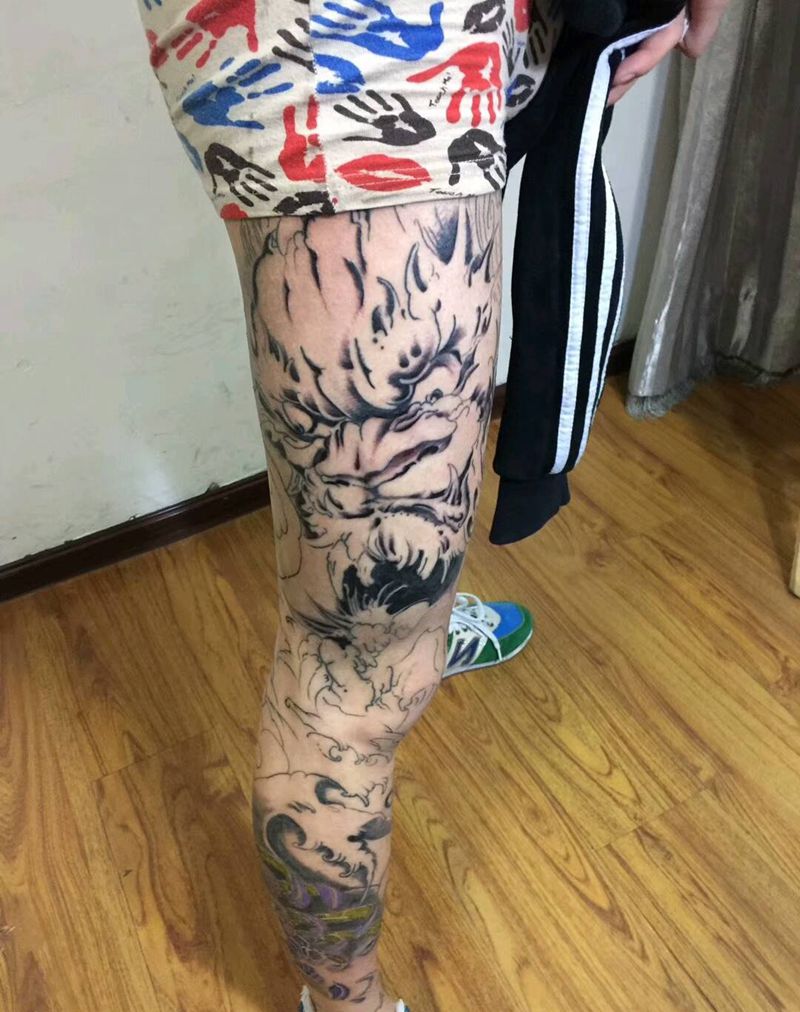 • T网红王老大花腿龙纹身图片_腿部新传统纹身图案