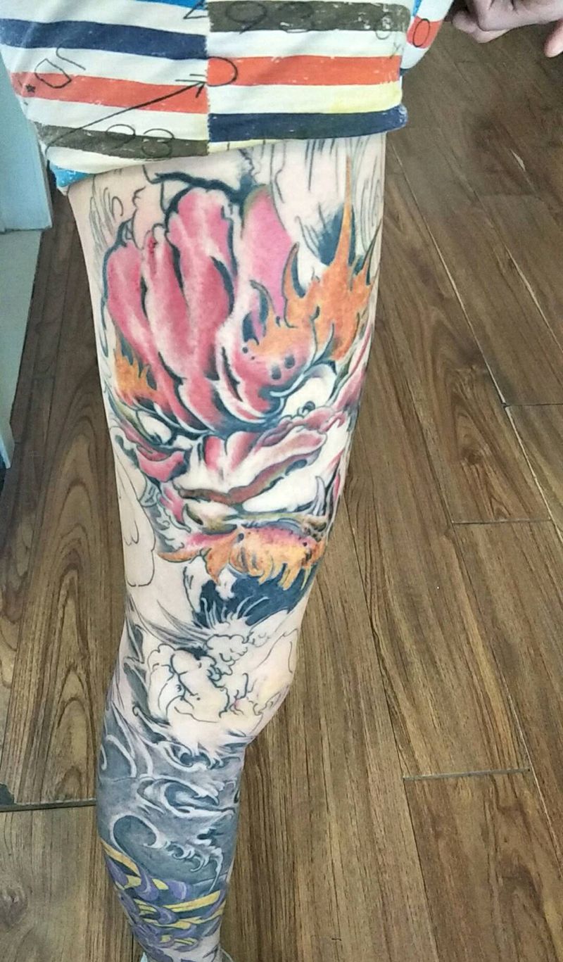 当前位置: 首页 >内蒙古通辽市纹身店-707刺青纹身图案>花腿唐狮 未完纹身图片
