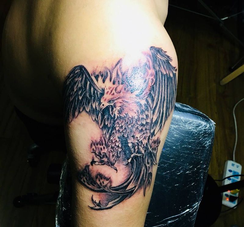 • 纹身吧推荐的披肩图腾半胛纹身图案作品展示