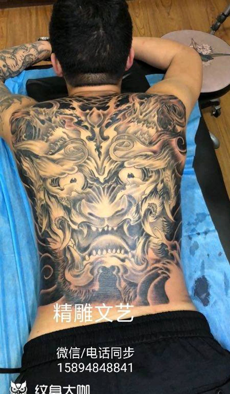 黑灰满背纹身图案