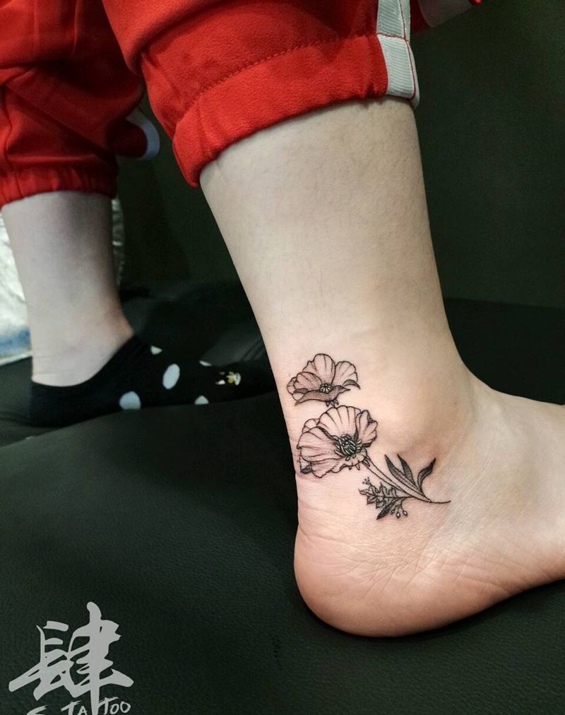 罂粟花纹身图片_脚部清新植物素花罂粟成品纹身图案