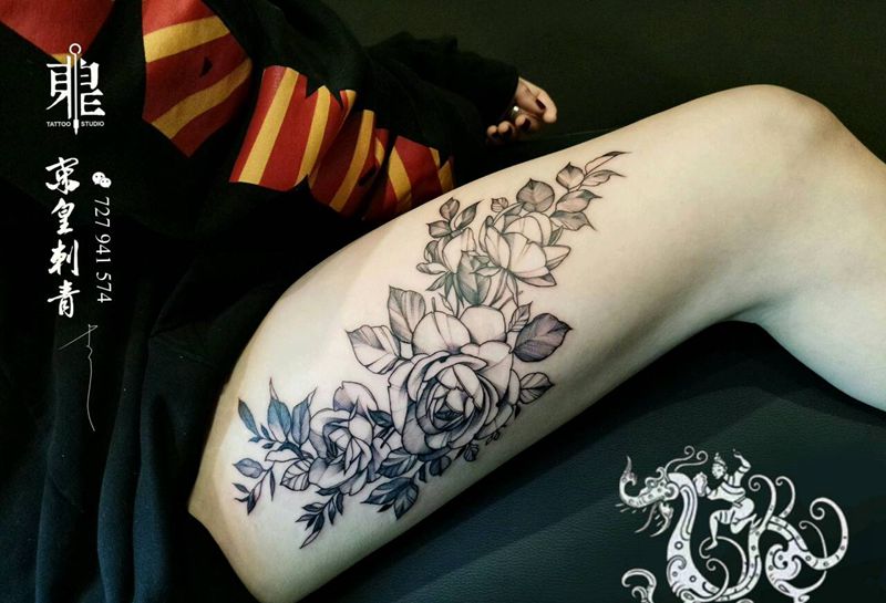 当前位置: 首页 >内蒙古呼伦贝尔市纹身店-STARSINK纹身图案>单针风格 素花纹身图片_腿部清新植物素花成品纹身图案
