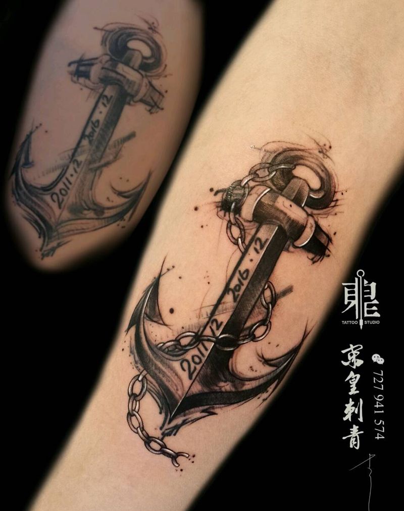 当前位置: 首页 >内蒙古呼伦贝尔市纹身店-STARSINK纹身图案>素描风格船锚纹身图片_手臂清新静物船锚成品纹身图案