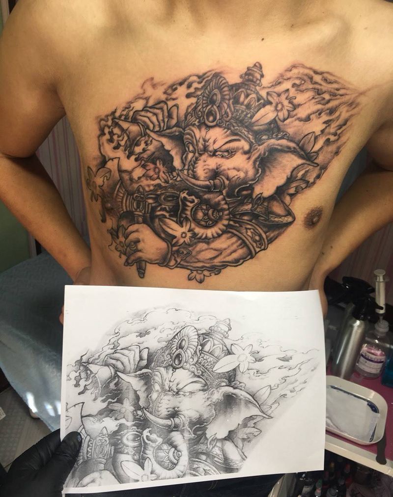 当前位置: 首页 >内蒙古锡林郭勒盟纹身店-青雲刺纹身图案>疤痕遮盖 象神纹身图片