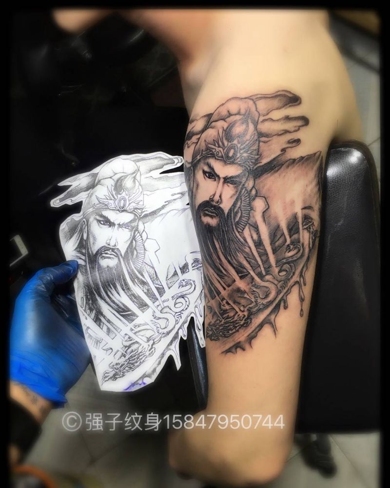当前位置: 首页 >内蒙古锡林郭勒盟纹身店-青雲刺纹身图案>大臂关公纹身图片