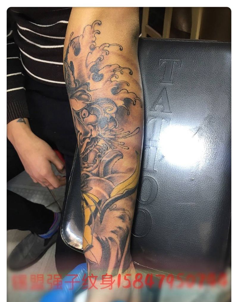 小臂般若纹身图片_成品手臂传统鬼神纹身图案