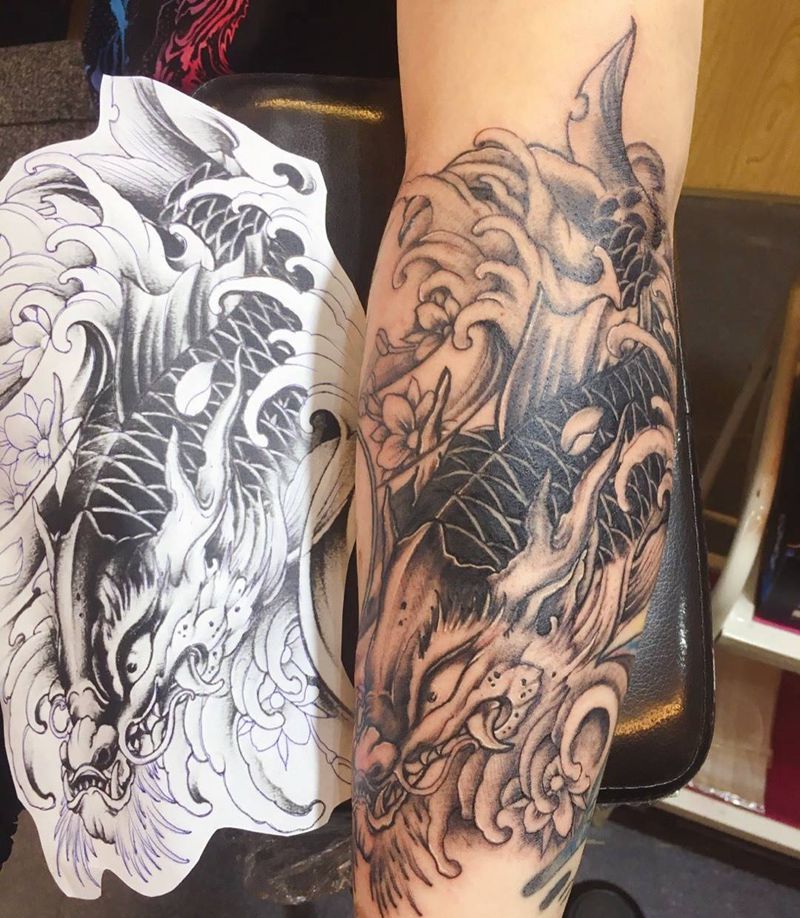 当前位置: 首页 >内蒙古锡林郭勒盟纹身店-青雲刺纹身图案>鳌鱼纹身图片_手臂传统动物未完纹身图案