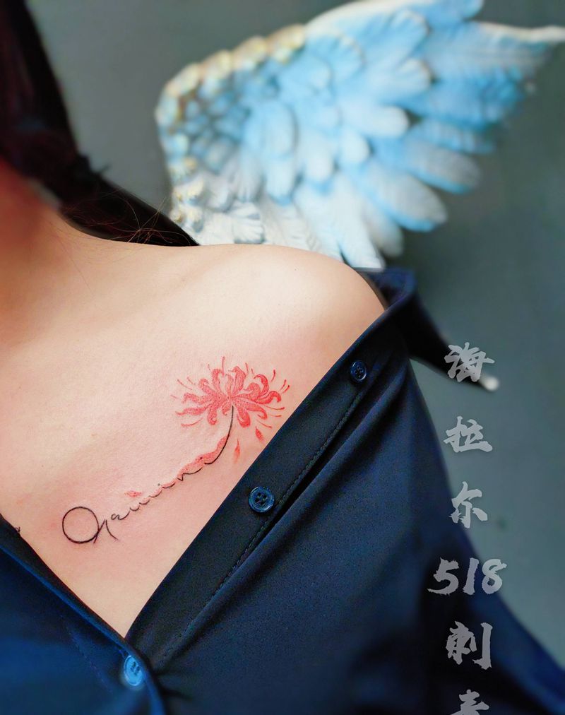 彼岸花纹身图片_肩部胸部水彩纹身图案