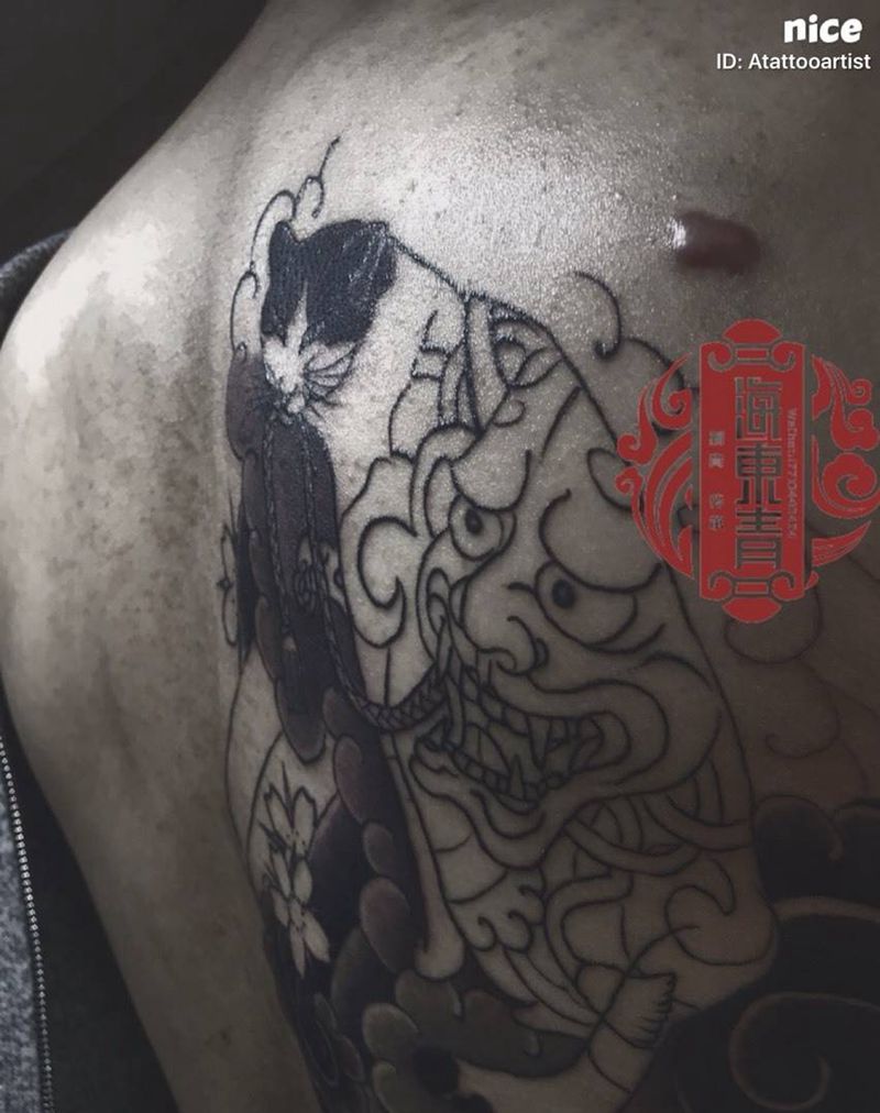 • 纹身吧推荐的披肩图腾半胛纹身图案作品展示
