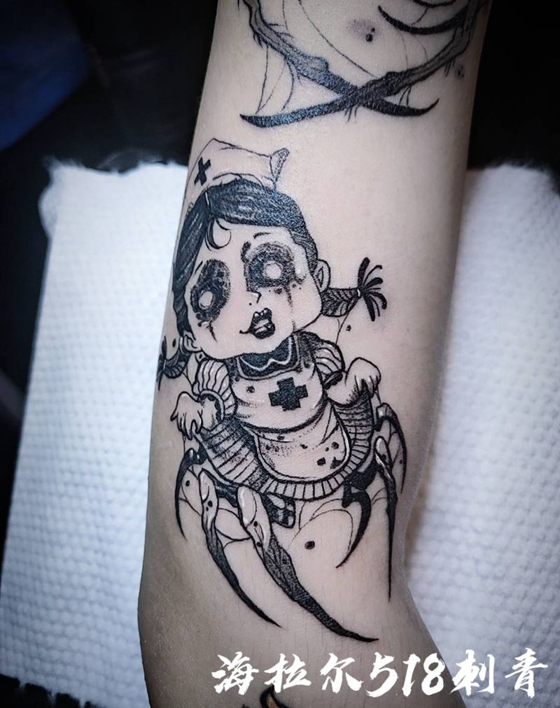 当前位置: 首页 >内蒙古呼伦贝尔市纹身店-518刺青纹身图案>暗黑蜘蛛护士纹身图片_手臂blackwork暗黑纹身图案
